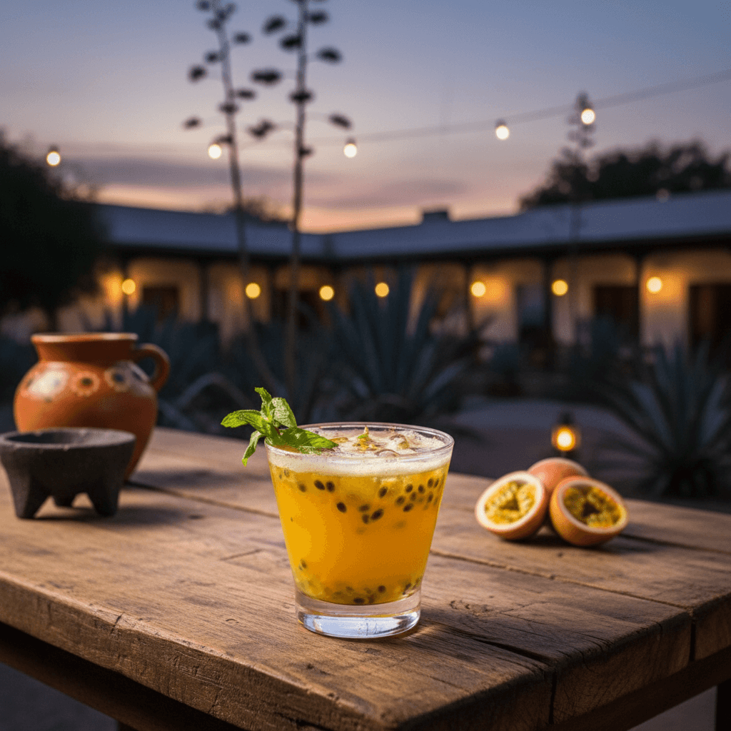 The Raicilla Passion Fruit is a tropical explosion that blends the artisanal character of Raicilla with the exotic intensity of passion fruit. A bright splash of lemon enhances its freshness, while the chamoy rim provides an irresistible sweet-and-sour contrast. Served over crushed ice, it’s the perfect choice for those seeking a vibrant and bold flavor profile.
